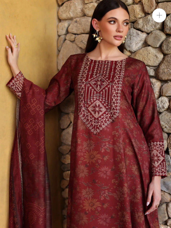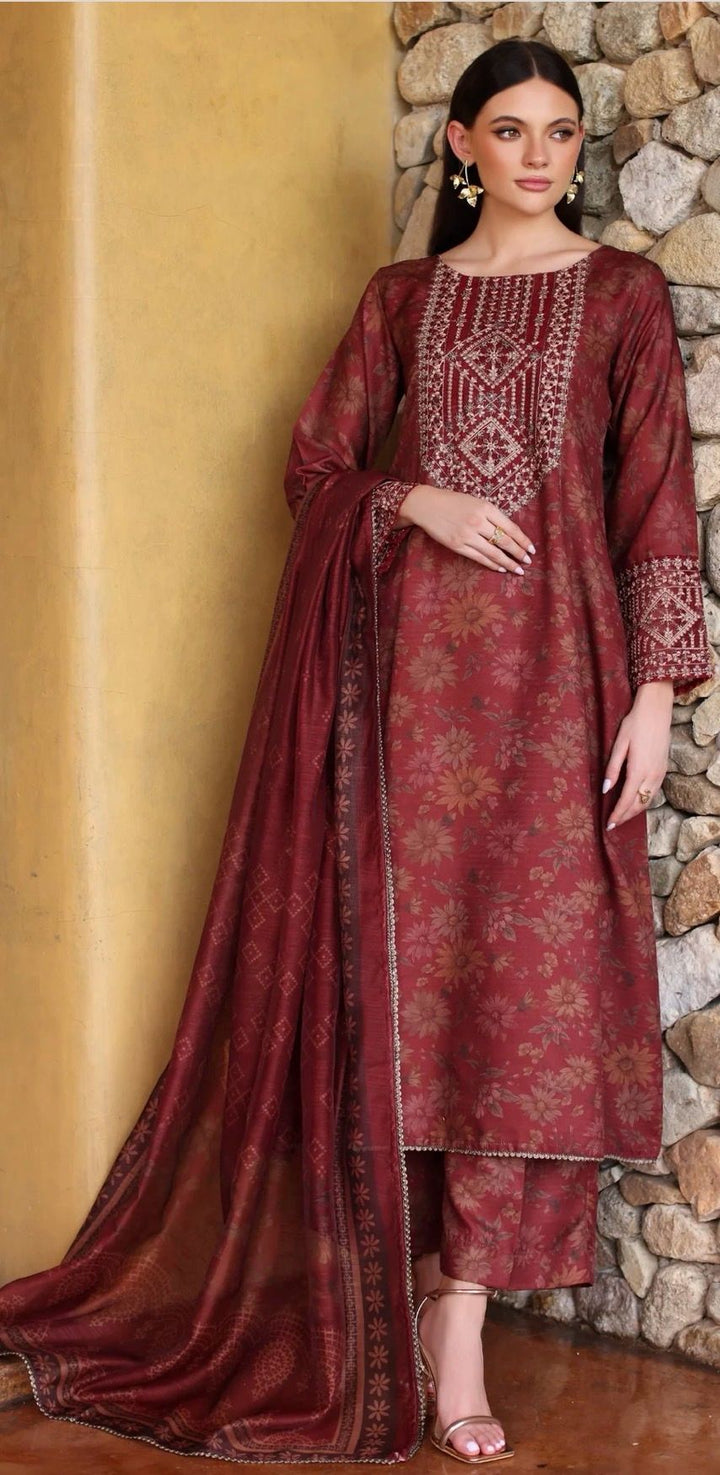 Maroon Grace – 3-Piece Blended Khaddar Embroidered Suit