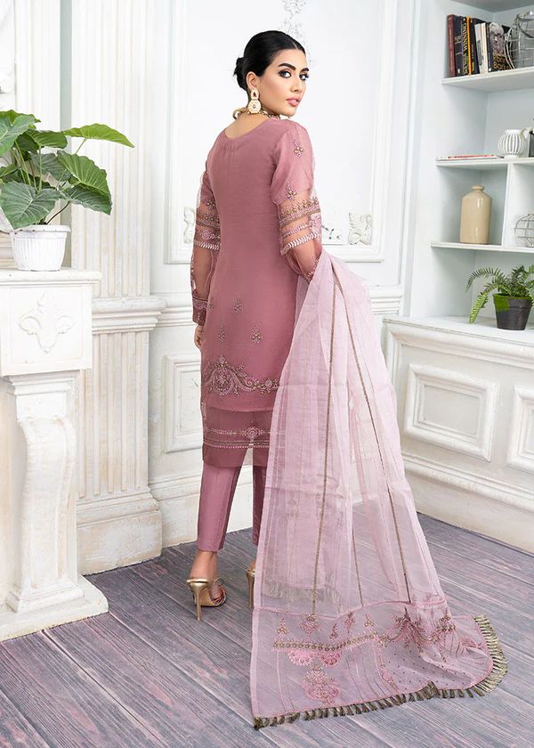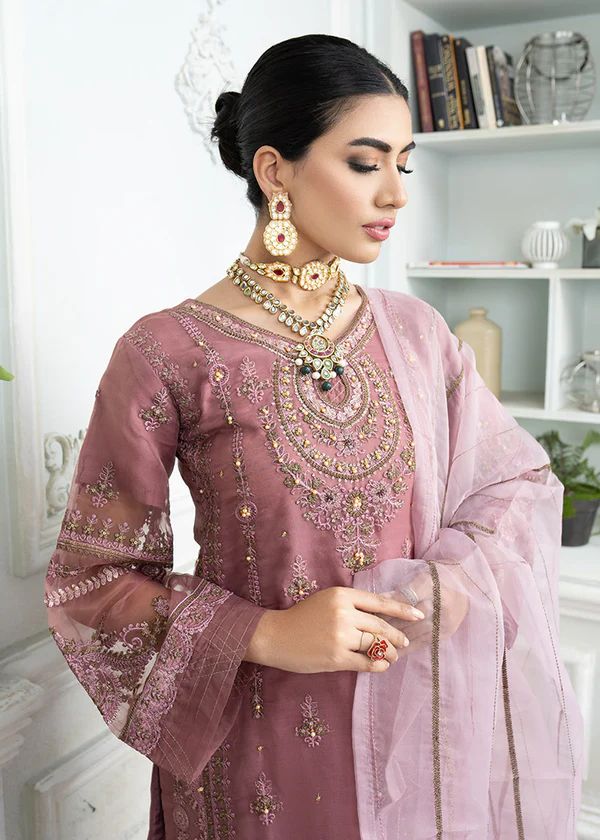 Mauve Majesty – Embroidered Organza Ensemble with Handwork