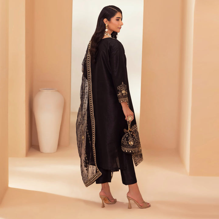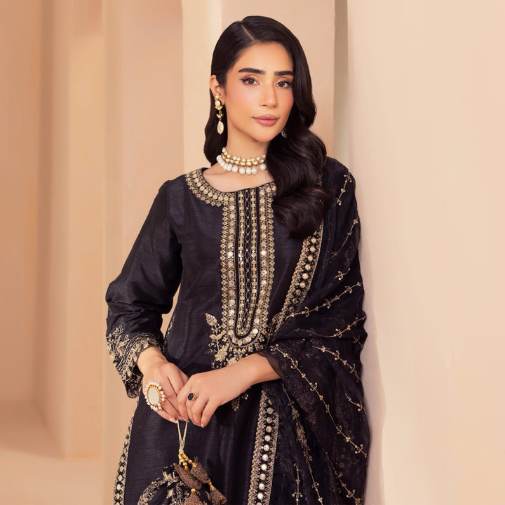 Midnight Grace – Raw Silk & Organza Embroidered Ensemble