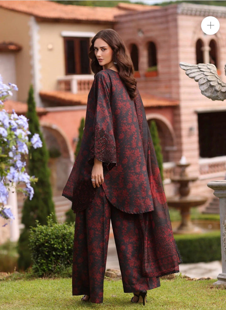 Maroon Bloom – 3-Piece Blended Khaddar Embroidered Suit