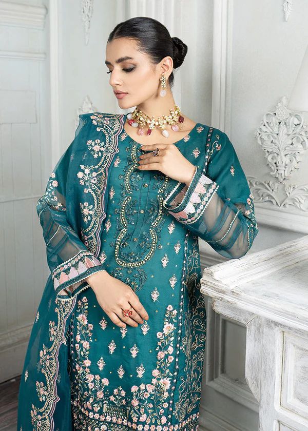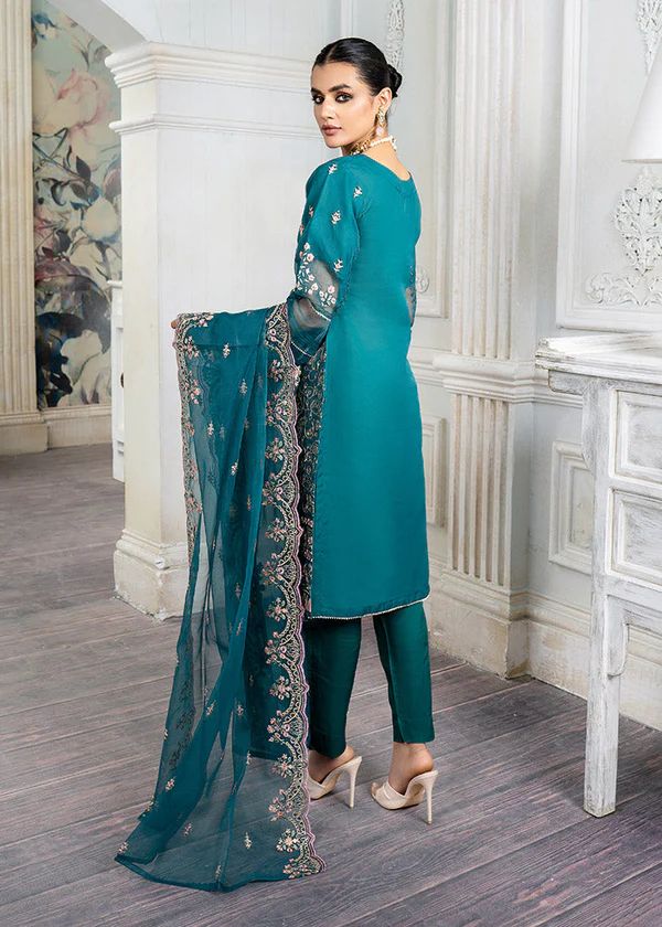 Teal Grace – Embroidered Organza Ensemble with Handwork