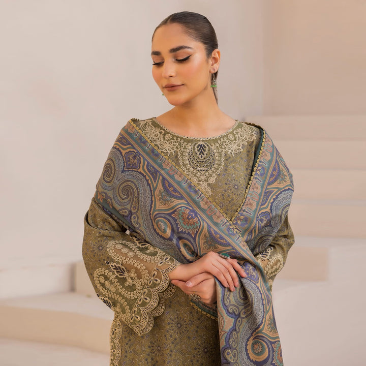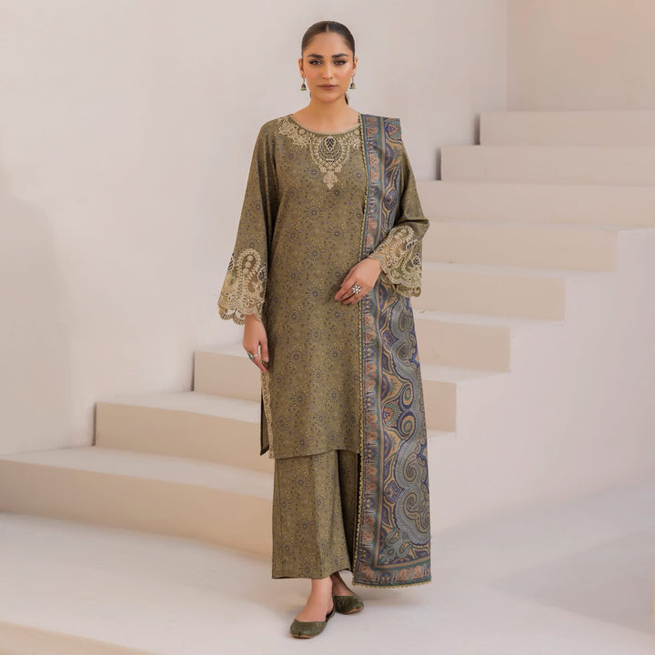 Winter Bloom – Printed Embroidered Dhanak with Wool Shawl