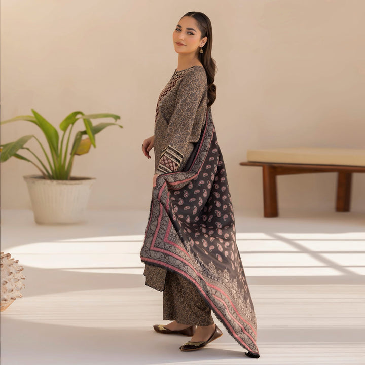Winter Luxe – Printed Embroidered Dhanak with Wool Shawl